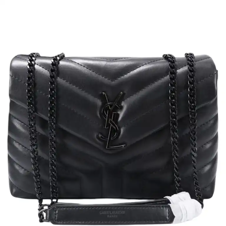 SAINT LAURENT LOULOU SMALL CHAIN BAG IN MATELASSE Y BLACK NOIR 23CM