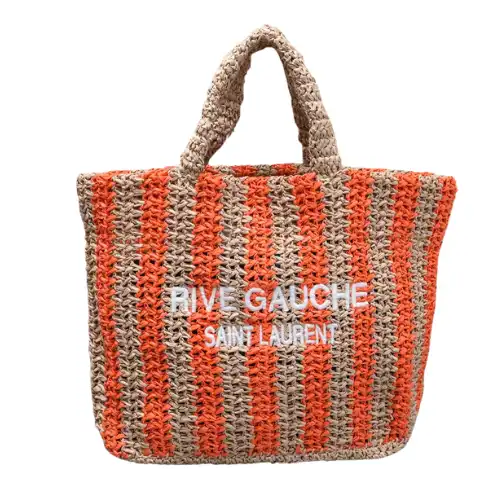 SAINT LAURENT RIVE GAUCHE RAFFIA CROCHET ORANGE TOTE